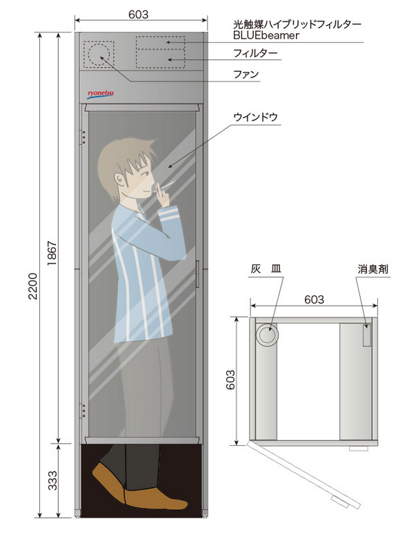 60cm四方の狭いスペースに設置でき、オフィスや店舗のバックヤードで、たばこを吸う人にも吸わない人にも共に優しい環境を手軽に作ることができます。